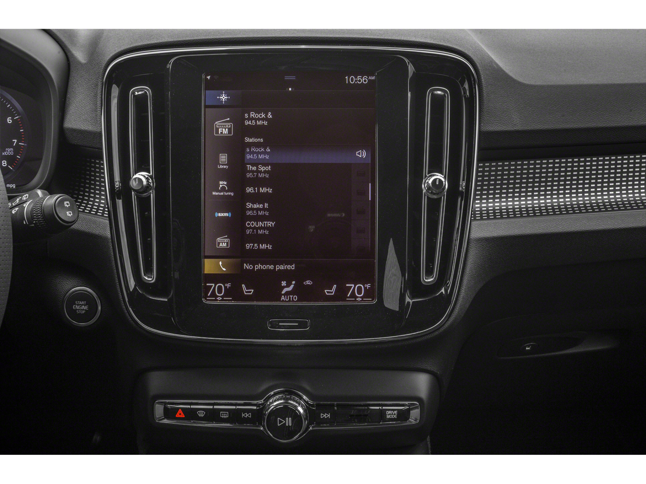 - Radio: AM/FM/HD -inc: Volvo Sensus Connect w/9" touchscreen, WiFi hotspot and complimentary trial for 6 months or 3GB (whichever comes first), 250W high performance audio system w/8 speakers including air woofer technology, Smartphone integration (Apple CarPlay/Android Auto), voice control, Bluetooth® connectivity w/audio streaming, SiriusXM satellite radio w/3-month complimentary audio trial subscription and 2 front/1 rear USB ports